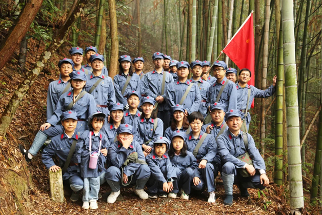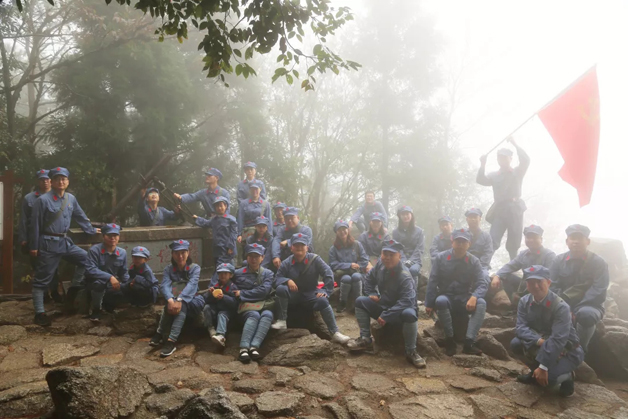朱毛挑糧小道位于井岡山西北面黃洋界下面,原名五里橫排,是當年紅軍從寧岡挑糧上山路線的一小段,路為羊腸小道,崎嶇不平,并且經(jīng)?;\罩著白茫茫的霧氣。在這次紅色之旅中,全體成員身穿紅軍服裝,頭戴紅軍帽,打著裹腿,重走當年紅軍百里挑糧的部分路程,大家在井岡山親身感受到革命年代紅軍的艱辛,這讓和平年代出生的我們對這種艱辛有更深刻的認識和體會。