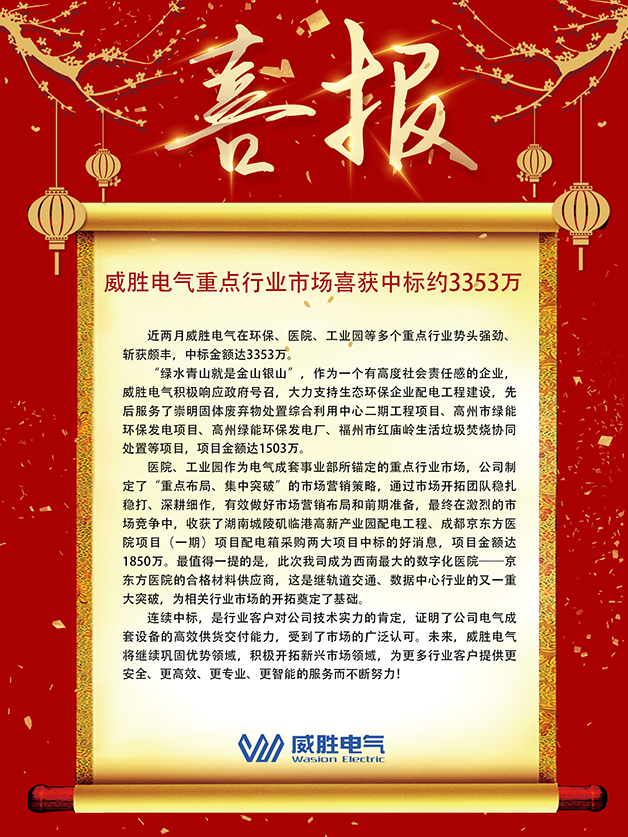 連續中標,是行業客戶對公司技術實力的肯定,證明了公司電氣成套設備的高效供貨交付能力,受到了市場的廣泛認可。未來,威勝電氣將繼續鞏固優勢領域,積極開拓新興市場領域,為更多行業客戶提供更安全、更高效、更專業、更智能的服務而不斷努力!