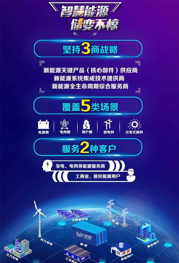 惟遠(yuǎn)能源產(chǎn)業(yè)技術(shù)有限公司,智慧新能源與能效服務(wù)專家。儲(chǔ)能,是實(shí)現(xiàn)“智慧能源”的重要手段,威勝“儲(chǔ)能+”屬于“新能源+”內(nèi)涵,是公司未來(lái)著重發(fā)展的業(yè)務(wù)。為了更好地服務(wù)客戶,威勝針對(duì)大型能源系統(tǒng)、微電網(wǎng)、分布式離網(wǎng)系統(tǒng)提出5類儲(chǔ)能應(yīng)用場(chǎng)景,分別提供解決方案與服務(wù)。