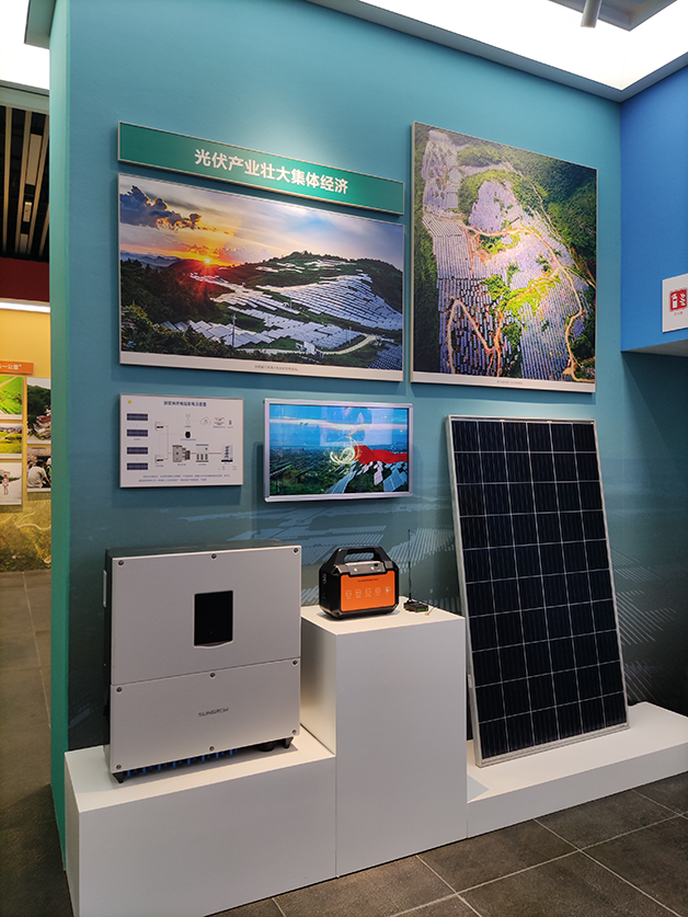 特別值得一提的是,在成就展2號(hào)展廳,有一個(gè)特別的一角,它以光伏扶貧產(chǎn)品+視頻+圖片等形式充分展現(xiàn)了以威勝電氣為代表的能源企業(yè),近年來充分結(jié)合實(shí)際,積極開展光伏扶貧工作,為貧困地區(qū)建設(shè)光伏電站,上網(wǎng)電量收益直接用于貧困群眾增收,為實(shí)現(xiàn)“精準(zhǔn)扶貧”、壯大集體經(jīng)濟(jì)提供了“湖南樣本”!