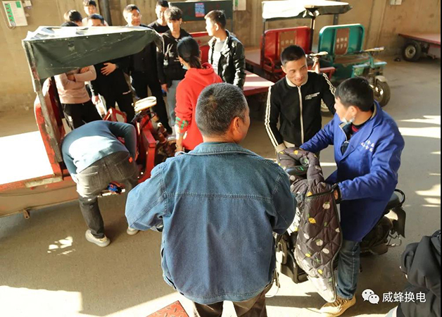 在我們現(xiàn)場(chǎng)改造的同時(shí),周邊的三輪師傅們也紛紛圍觀,據(jù)師傅們介紹,場(chǎng)內(nèi)傳統(tǒng)的充電樁需要繳納兩筆費(fèi)用,一筆是充電位年費(fèi)600元,一筆是實(shí)際充電電費(fèi),算起來(lái)一年在充電上面要花費(fèi)的錢逼近千元,伴隨而來(lái)的是巨大的時(shí)間成本。由于場(chǎng)內(nèi)電三輪充電區(qū)域緊湊,新老、品質(zhì)不一的電三輪充電安全隱患問(wèn)題也成為了他們心病。師傅們親眼看到換電改造如此快捷,了解到換電流程如此簡(jiǎn)單后,紛紛表示想嘗鮮咱們的換電新技術(shù)!
